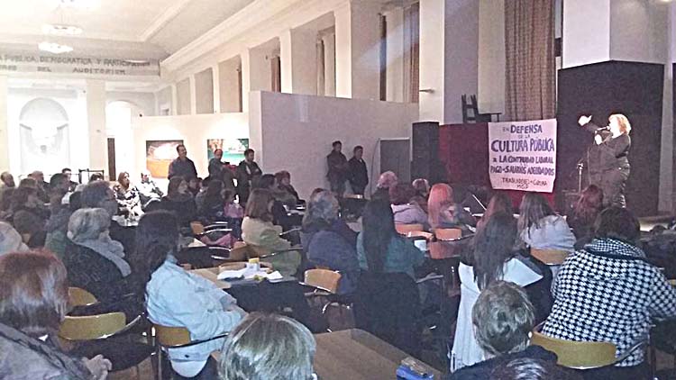 Luego se pudo ver un video en homenaje a la trayectoria artística y de gestión de la homenajeada y posteriormente hubo palabras elogiosas a su tarea de parte de Pablo Drago y de tres de los capacitadores: Mónica Pari, Pablo Lizalde y Mario González que además recordaron que continúa la lucha para recuperar sus fuentes de trabajo.