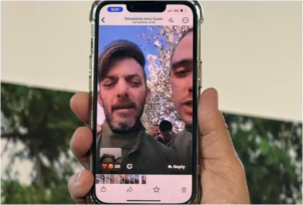 En la imagen, los hermanos Cunio, Ariel y David, hablan por FaceTime con sus familiares Arbel Yehoud y Sharon Cunio. Foto: EFE | Foro De Familias de Rehenes y Desaparecidos.