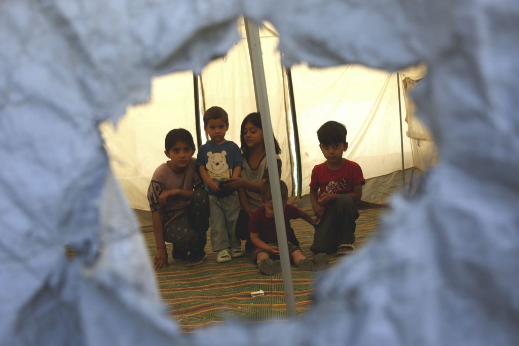 REFUGIO. Niños afganos son vistos en un campamento provisional, en Kabul, Afganistán, el 2 de junio de 2025. Un total de 500.000 refugiados afganos han regresado a su tierra natal, Afganistán, desde los vecinos Pakistán e Irán en abril y mayo, según el Alto Comisionado de las Naciones Unidas para los Refugiados.