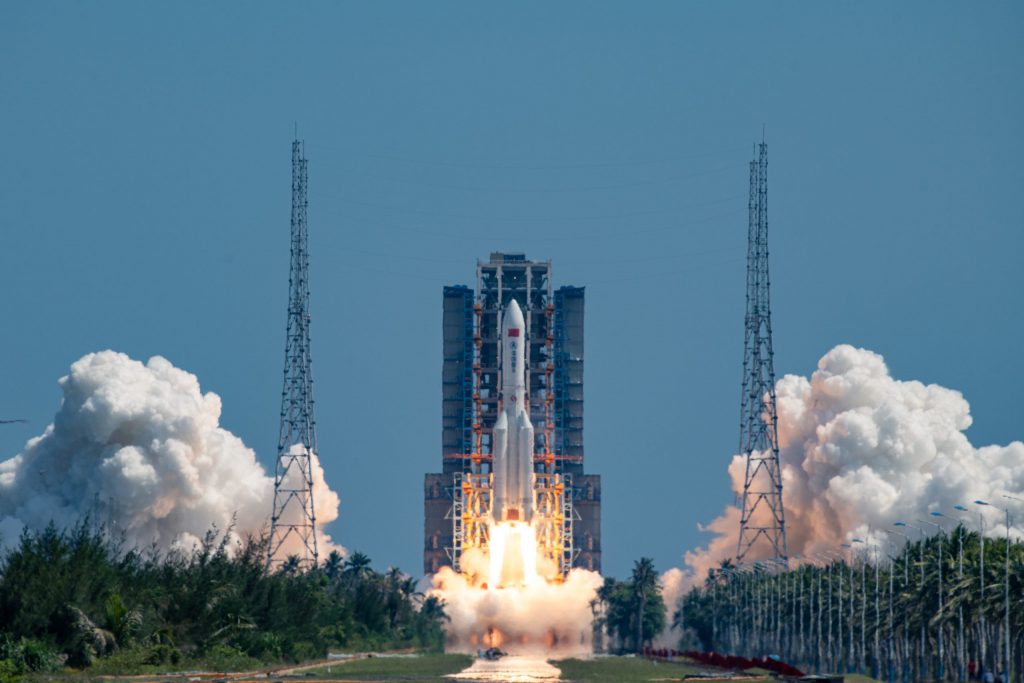 AL ESPACIO. Un cohete portador Gran Marcha-5B que transporta un grupo de satélites de órbita terrestre baja despega desde el Sitio de Lanzamiento Espacial de Wenchang, en la provincia de Hainan, en el sur de China.