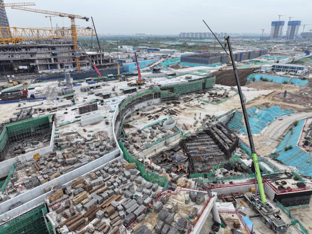 CONSTRUCCIÓN.Vista aérea tomada con un dron del sitio de construcción de una sección subterránea del ferrocarril de alta velocidad Xiong’an-Xinzhou y los proyectos auxiliares, en Xiong’an, en la provincia de Hebei, en el norte de China. La sección subterránea del ferrocarril de alta velocidad Xiong’an-Xinzhou en la zona de inicio de la Nueva Area de Xiong’an se encuentra actualmente en construcción.
