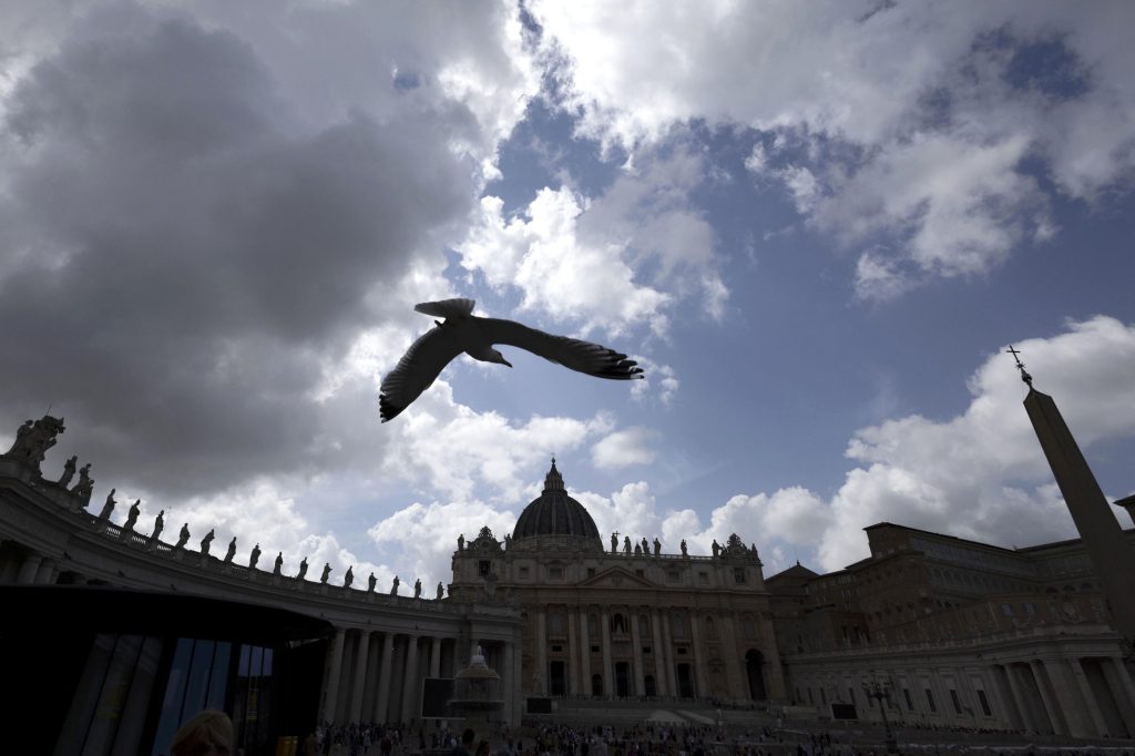 Un pájaro sobrevuela la Plaza de San Pedro durante la reunión de la Congregación General de Cardenales, en Ciudad del Vaticano. Foto: EFE | EPA | Massimo Percossi.