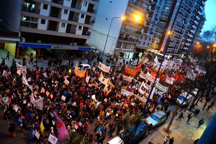 La concentración mayor se dio a partir de las 17, que fue el punto de encuentro para comenzar a marchar primero por la Avenida Luro hasta Santiago del Estero, luego por Rivadavia hasta Independencia y luego se regresó por Luro hasta el monumento a San Martín, donde se terminó entonando las estrofas del Himno Nacional.
