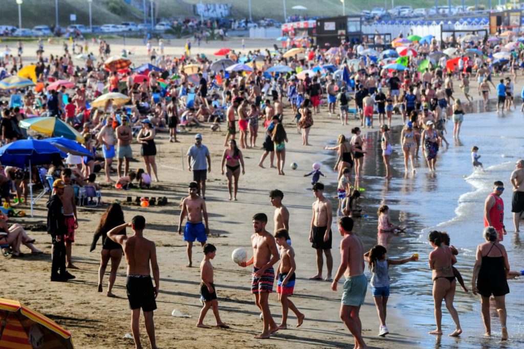 Sombrillas, sillitas, alguna tabla -a pesar de la ausencia de olas- y hasta alguna heladerita fueron parte del paisaje sobre la arena en distintos sectores.