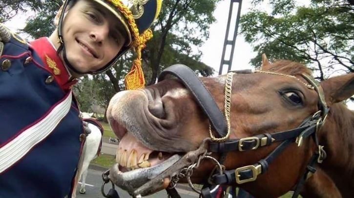 Una autofoto, más conocidas como selfies, que se sacó un granadero con su caballo se viralizó en las redes sociales por la expresión del animal, quien parece posar con una sonrisa ante la cámara del teléfono celular.