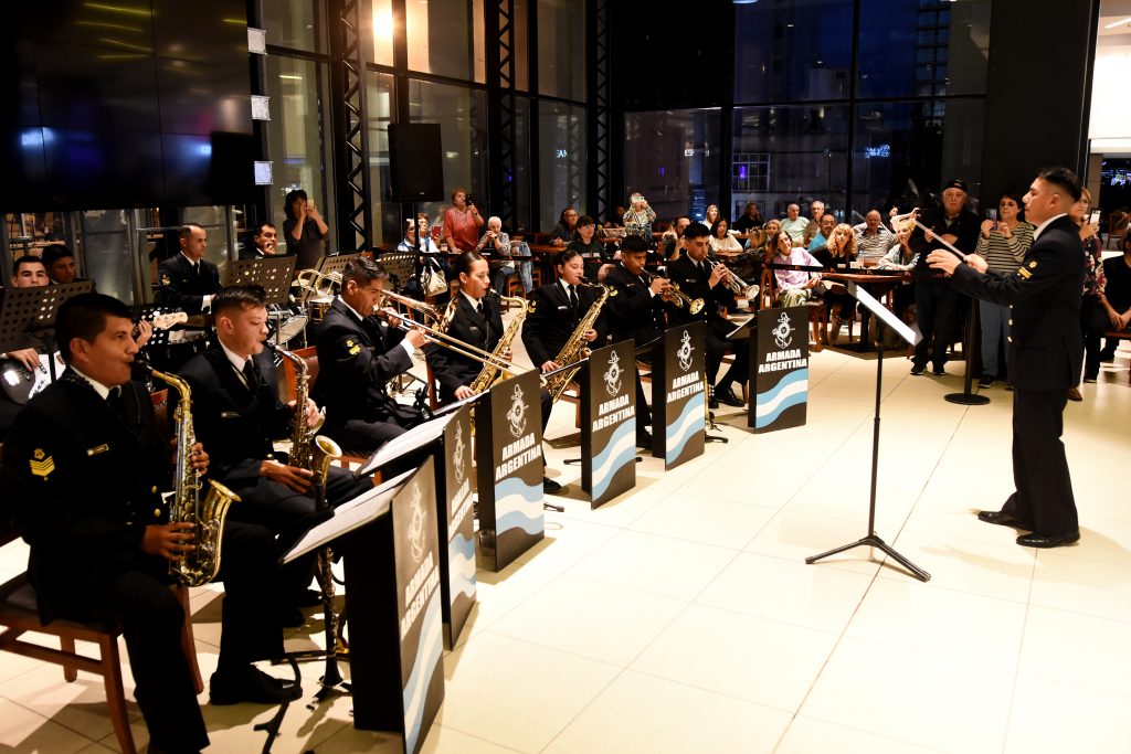 Un cálido momento se vivió ayer en el patio de comidas del Paseo Aldrey con la presentación de la Orquesta de Música del Área Naval Atlántica que brindó un concierto gratuito con un variado repertorio. La presentación se realizó en el marco de la conmemoración del Día de la Armada.