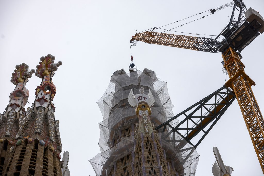 Los operarios culminaron la cruz con la ayuda de una gran grúa para rematar el templo católico, proyectado en el siglo XIX por el arquitecto Antoni Gaudí (1852-1926), genio español del modernismo, aunque la pieza aún debe ser anclada. La cruz tiene en sí 17 metros de altura y 13,5 de ancho.