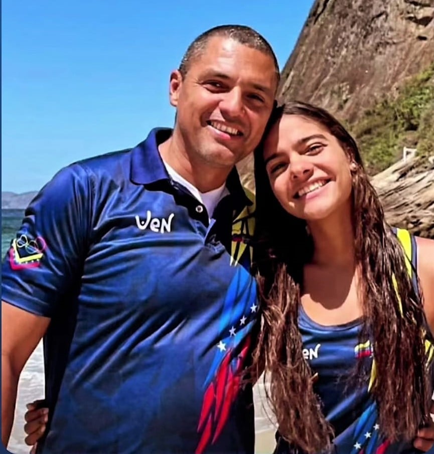 La venezolana Andrea Bordones, candidata ganar los 5.400 metros, junto a Javier, su padre y entrenador.
