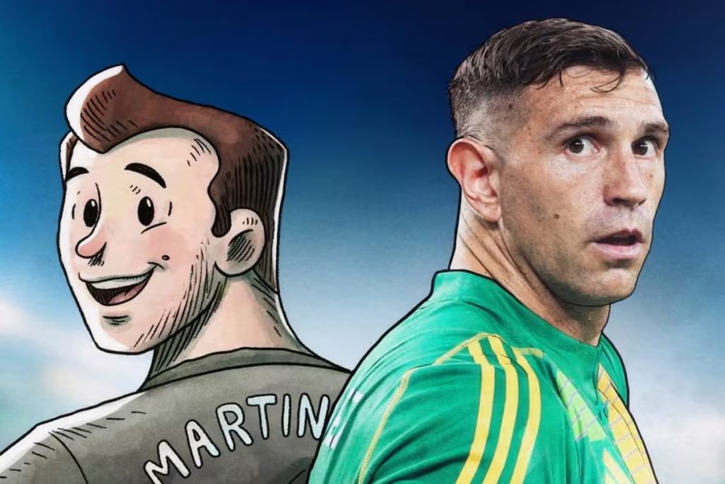 El anuncio vino acompañado de una primera imagen que mezcla realidad e ilustración, un recurso que anticipa el tono narrativo. El arquero aparece con la camiseta de la Selección junto a su versión dibujada, reforzando ese cruce entre documental y arte que propone la película.