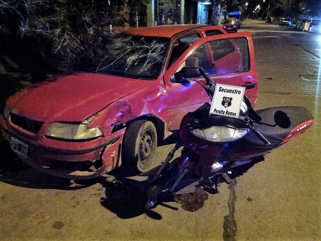 Un hombre que en la madrugada de hoy le había sustraído una moto a una mujer en la vía pública, se encuentra en estado delicado tras colisionar contra un Volkswagen Gol en el momento que se daba a la fuga.