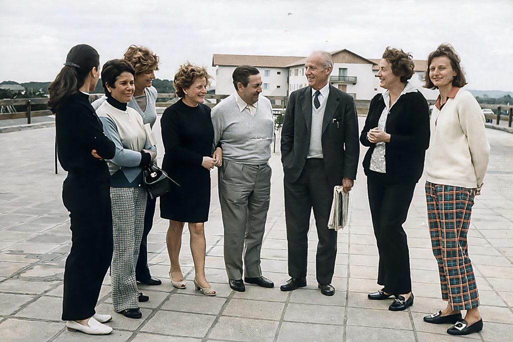 El doctor Leloir (de traje) en Chapadmalal, donde dictó una conferencia en un curso de bioquímica clínica antes de viajar a recibir el premio Nobel.