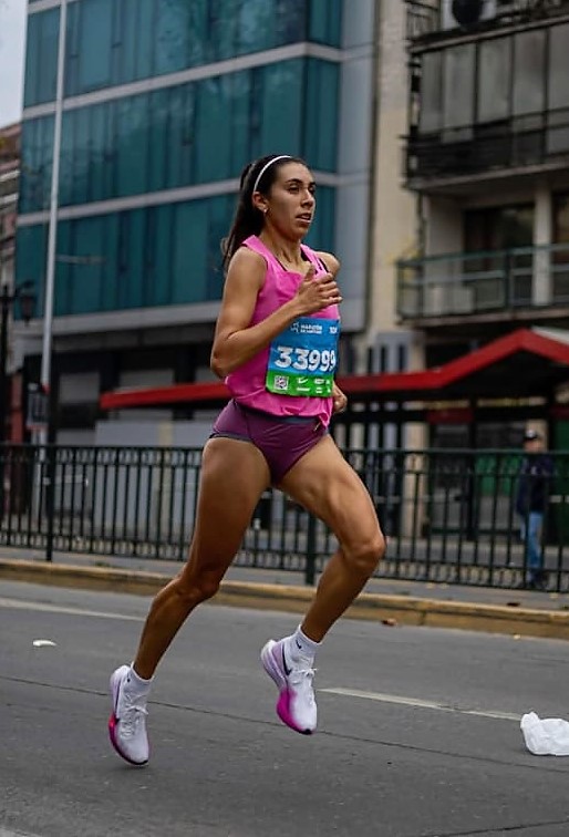 Foto: @focorace_ Micaela Levaggi corriendo por la capital chilena.