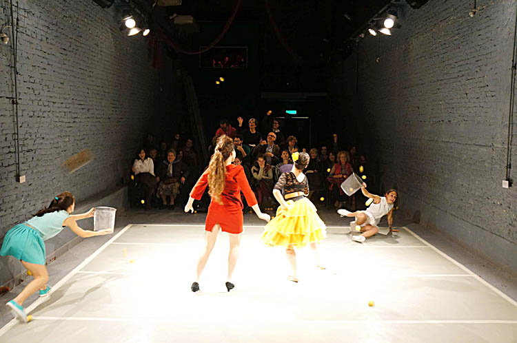 Se trata de una pieza que podría tener infinitas descripciones “porque en cada espectador hay una obra posible. La acción sucede en todos lados, hace foco y estalla, no se sabe quién mira y quién es mirado”, indicaron las referentes e la puesta que fue estrenada en noviembre de 2014. Sus creadoras se conocieron en la Universidad Nacional de las Artes y trabajan colaborativamente, alternando roles en distintos proyectos desde 2012.