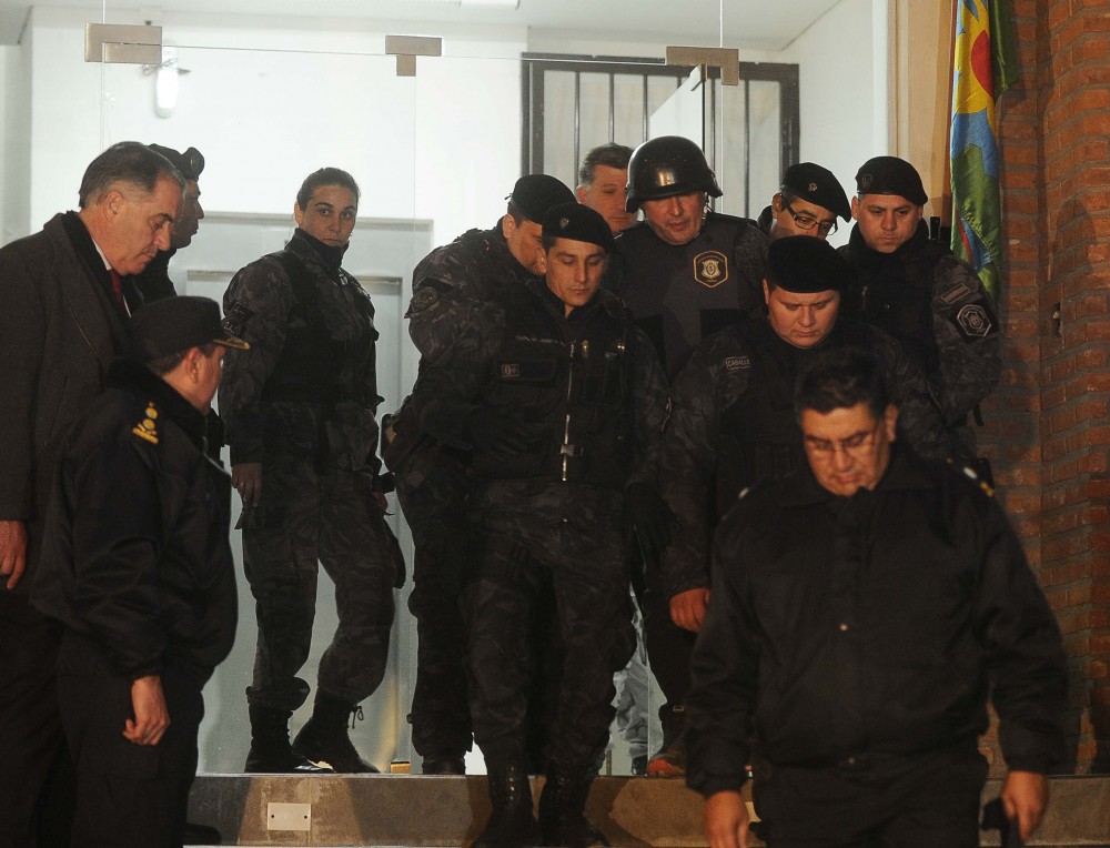 López fue trasladado con chaleco antibalas y casco desde la Departamental de Moreno, donde volvió a pasar la noche y en la que se encontraba detenido desde que en la madrugada del martes fue apresado por efectivos de la policía bonaerense en el partido de General Rodríguez.