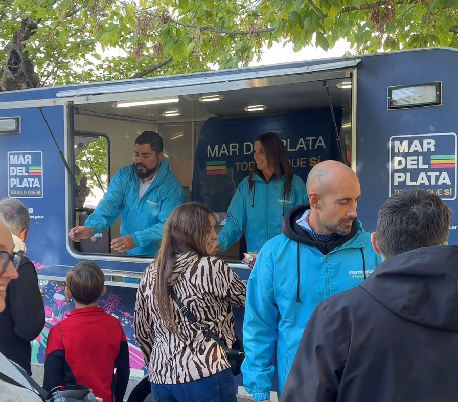También hubo entrega de material promocional de Mar del Plata y se realizaron juegos interactivos relacionados con los atractivos y la historia de la ciudad para ganarse diversos premios.