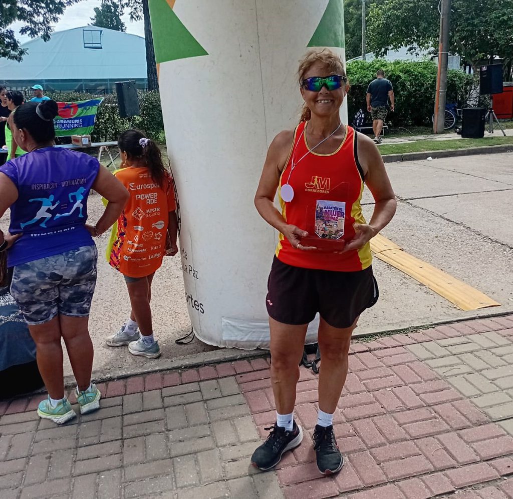 Se impuso en los 20 kilómetros de marcha atlética en Montevideo, Uruguay. Fue la única argentina participante. Además, en Uruguay, atletas de JM Corredores sumaron 18 medallas en un torneo internacional Master.