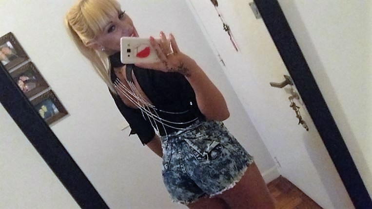 En la imagen puede observarse una frase en inglés: “Enjoy me”, en español “Disfrútame”, ubicada en la zona baja de la espalda de la uruguaya, que llevaba puesto un diminuto short.
