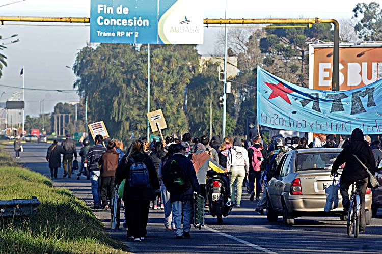 En la mano que conduce a Buenos Aires se apostaron manifestantes del Movimiento Atahualpa, que reclamaron trabajo para cooperativas en la limpieza de arroyos, mientras que en la otra se establecieron integrantes de la agrupación Votamos Luchar, del Movimiento Teresa Rodríguez, en un corte que incluyó quema de neumáticos y restos de poda.