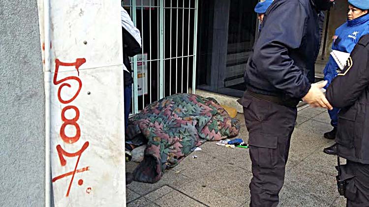Un joven en situación de calle que desde hacía algunos días dormía en la zona céntrica falleció ayer junto al hall de un edificio ubicado en Catamarca 2044.