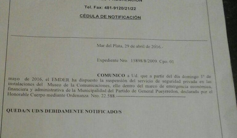 Mientras al Concejo Delibertante ingresó un proyecto de ordenanza para declarar de interés el Museo de las Comunicaciones y establecer un programa para su puesta en valor, desde el EMDER se le acaba de retirar el servicio de seguridad.