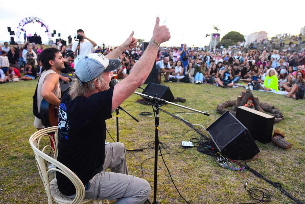 Cuando el sol comenzaba a esconderse, se inició el show musical del marplatense Tato Arzune con sus “Canciones de fogón” y el actor Facundo Arana como invitado sorpresa, entonando “Juntos a la par”.