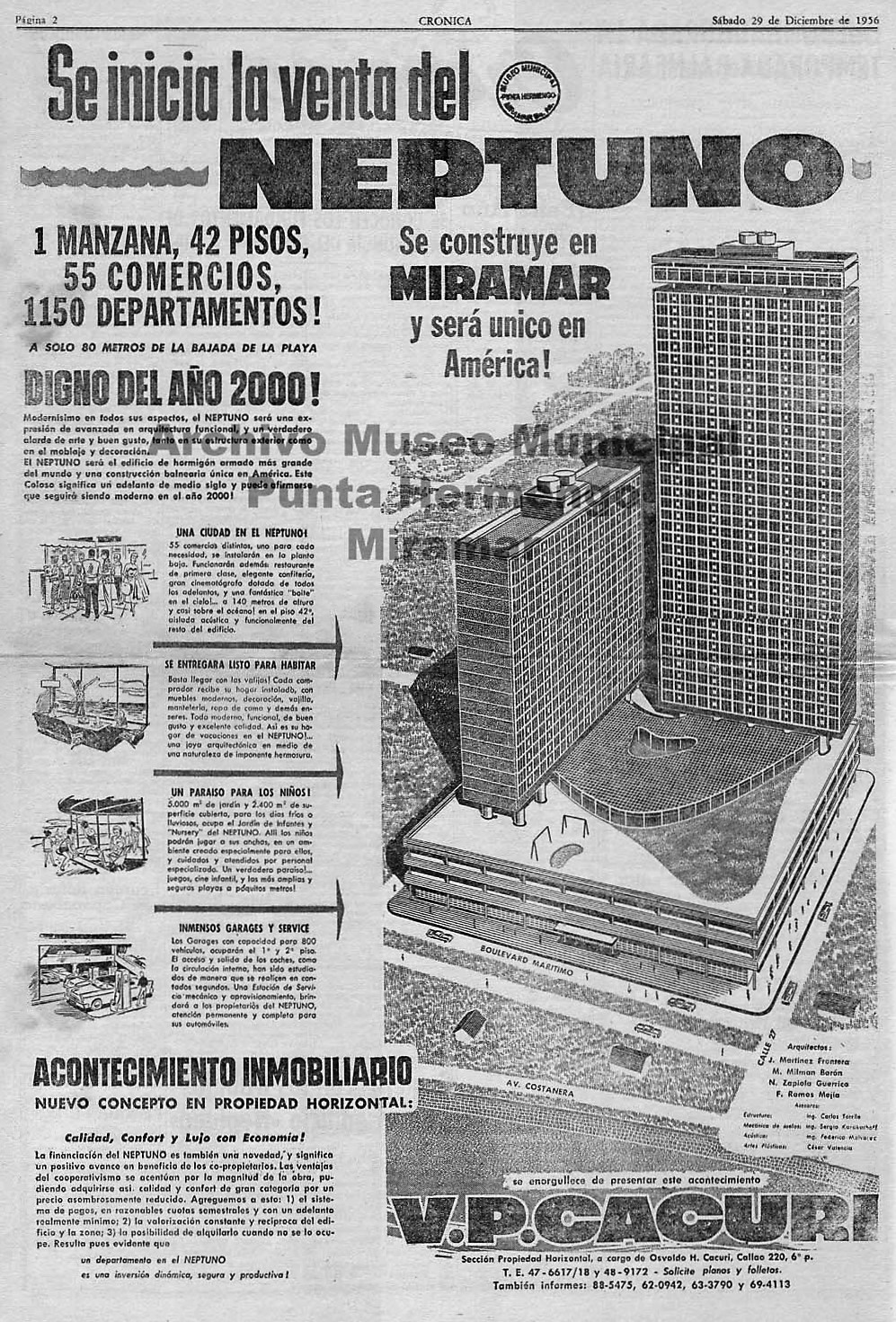 MIRAMAR (Corresponsal).- Proyectos arquitectónicos colosales que resultaron truncos los hubo y muchos a lo largo de la historia, pero en Miramar el caso del edificio “Neptuno”, marcó un imborrable y oscuro recuerdo.