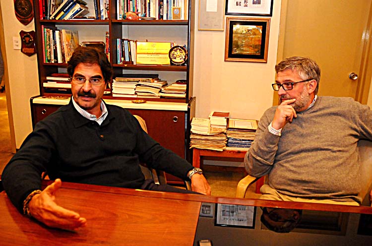 El ministro de Agroindustria provincial, Leonardo Sarquís, y el de Trabajo, Marcelo Villegas, analizan la primera reunión con los distintos sectores del Puerto de la ciudad.