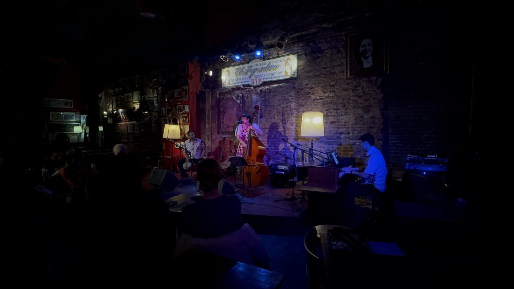 Manuel García (piano), Juan Pérez Ludueña (percusión) y Ayelén Peralta (contrabajo y voz) interpretan clásicos como “Dos Gardenias”, “Piel Canela”, “Quizás, Quizás, Quizás”, junto a versiones bolero de temas inesperados como “No podrás” (Cristian Castro) y “Corazón Partido” (Alejandro Sanz)