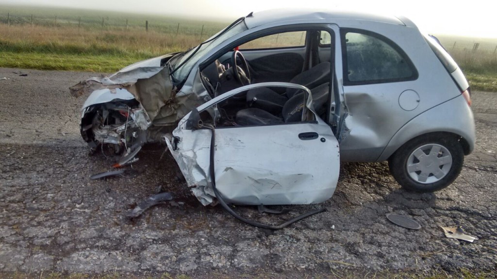Un Ford K y un Fiat Palio chocaron de manera frontal esta mañana en el acceso a la localidad de Mechongué, a metros de la Ruta 88.