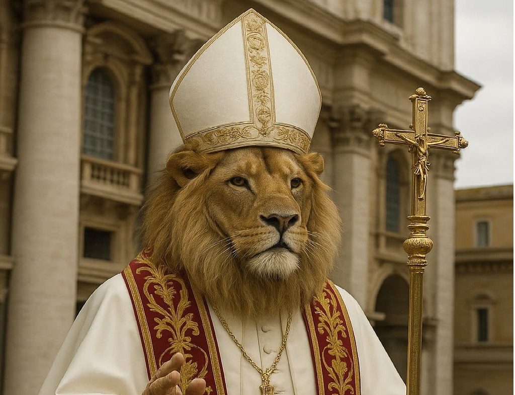 La imagen hace alusión al nuevo papa León XIV, nombre elegido por el cardenal estadounidense Robert Francis Prevost, recientemente proclamado sucesor de Francisco tras la fumata blanca desde la Capilla Sixtina.