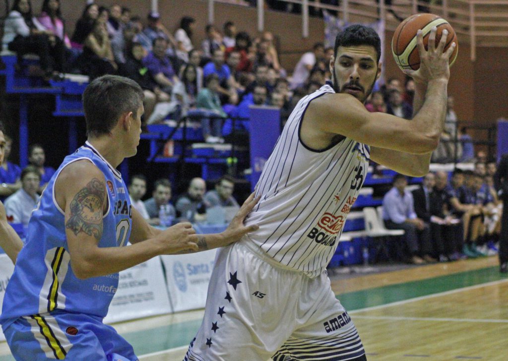 Maniobra Roberto Acuña marcado por Treise. El pivote de Peñarol se cargó de faltas personales y no pudo gravitar.