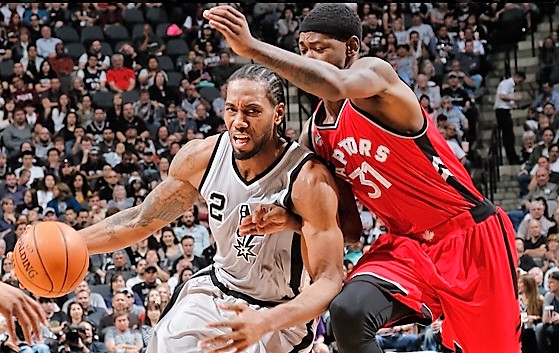El alero Kawhi Leonard logró 33 puntos, su mejor marca como profesional, y el ala-pivote LaMarcus Aldrige aportó un doble-doble de 31 tantos y 15 rebotes, que ayudaron a los Spurs a ganar 102-95 a los Raptors de Toronto en duelo de equipos líderes de División. El argentino Emanuel Ginóbili aportó 5 puntos.