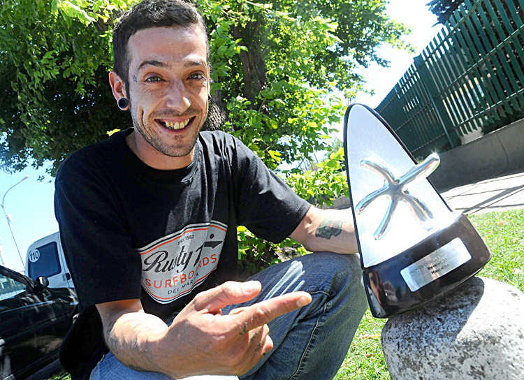 “Estoy re feliz, sí, estoy re feliz, nunca me lo hubiese esperado, nunca gané un premio. Sentía que eran todos actores y yo nada que ver… ahí va el hippie”, dice de él mismo el artista de 31 años que nació en Neuquén capital y paseó sus ganas de aprender las técnicas del circo por toda Argentina y América latina.