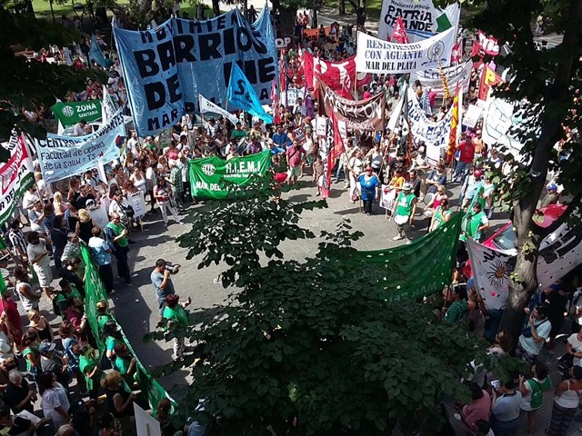 Gremios estatales, organizaciones sociales y politicas realizan una numerosa manifestación por las calles del centro de Mar del Plata en el marco del paro y la jornada de lucha nacional dispuesta por la Asociación de Trabajadores del Estado.