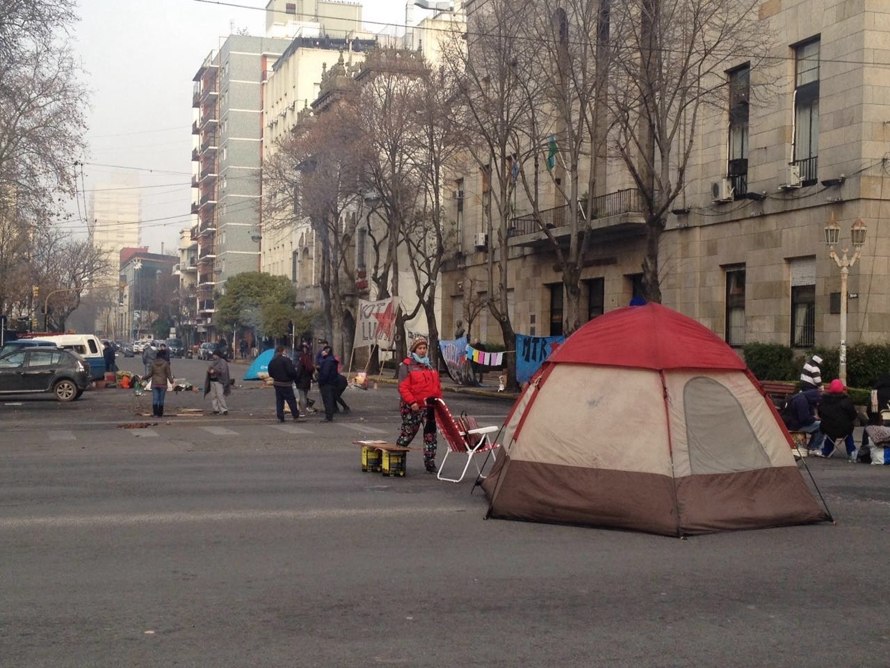 La protesta, que interrumpe el tránsito en Luro e Hipólito Yrigoyen, se viene desarrollando desde este miércoles, e incluye la presencia de carpas y de una olla popular frente a la comuna.