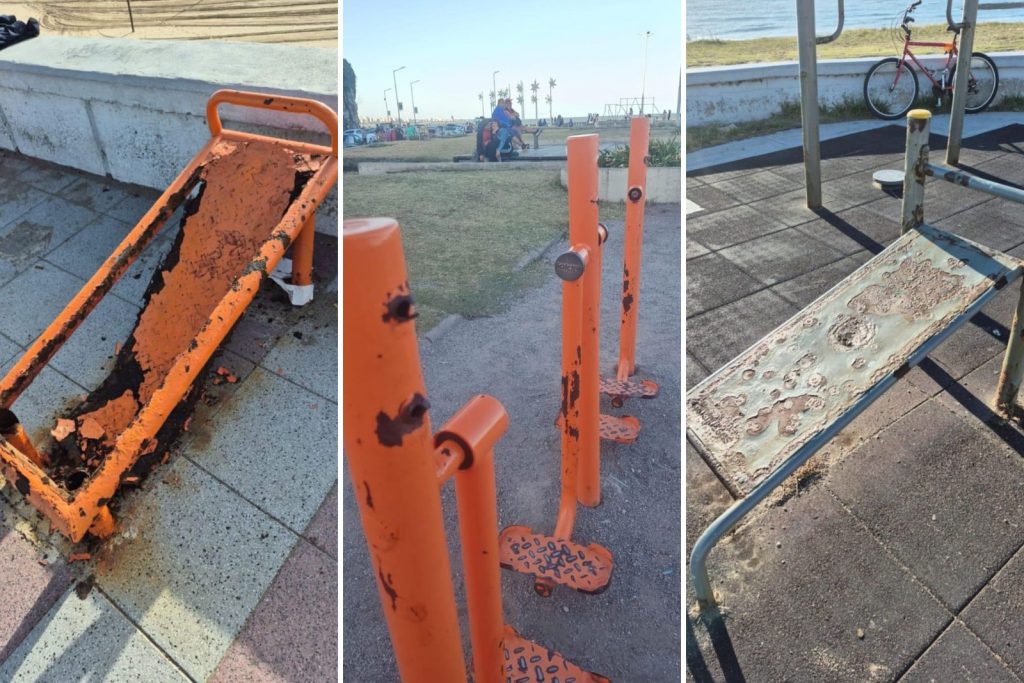 Hay equipamiento roto u oxidado que “corresponde a estaciones saludables ubicadas en las inmediaciones de Playa Grande, Cabo Corrientes, Paseo de las Américas, Plaza España, Av. Felix U. Camet y Constitución, Av. Felix U. Camet y Sacagnini y Av. Felix U. Camet y Alfonsina Storni, entre otras”.