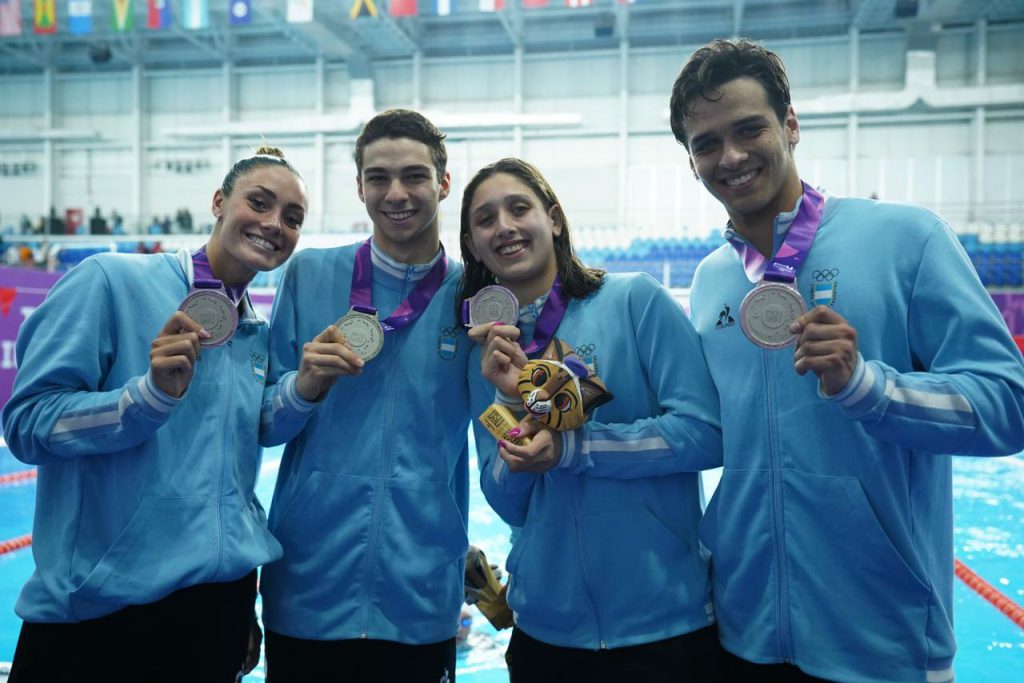 Los nadadores marplatenses aportaron una nueva medalla para la delegación de Argentina en los Juegos Panamericanos Junior que se desarrollan en Asunción. Matías Chaillou, Ulises Saravia y Lucía Gauna tomaron parte de la posta 4×100 mixta que se quedó con la medalla de plata.