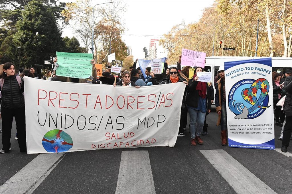 Los manifestantes pidieron políticas públicas en discapacidad, aumento de honorarios profesionales que “están devaluados y congelados desde diciembre de 2024“, la regularización de pagos, la falta de nuevas pensiones y de certificados de discapacidad.