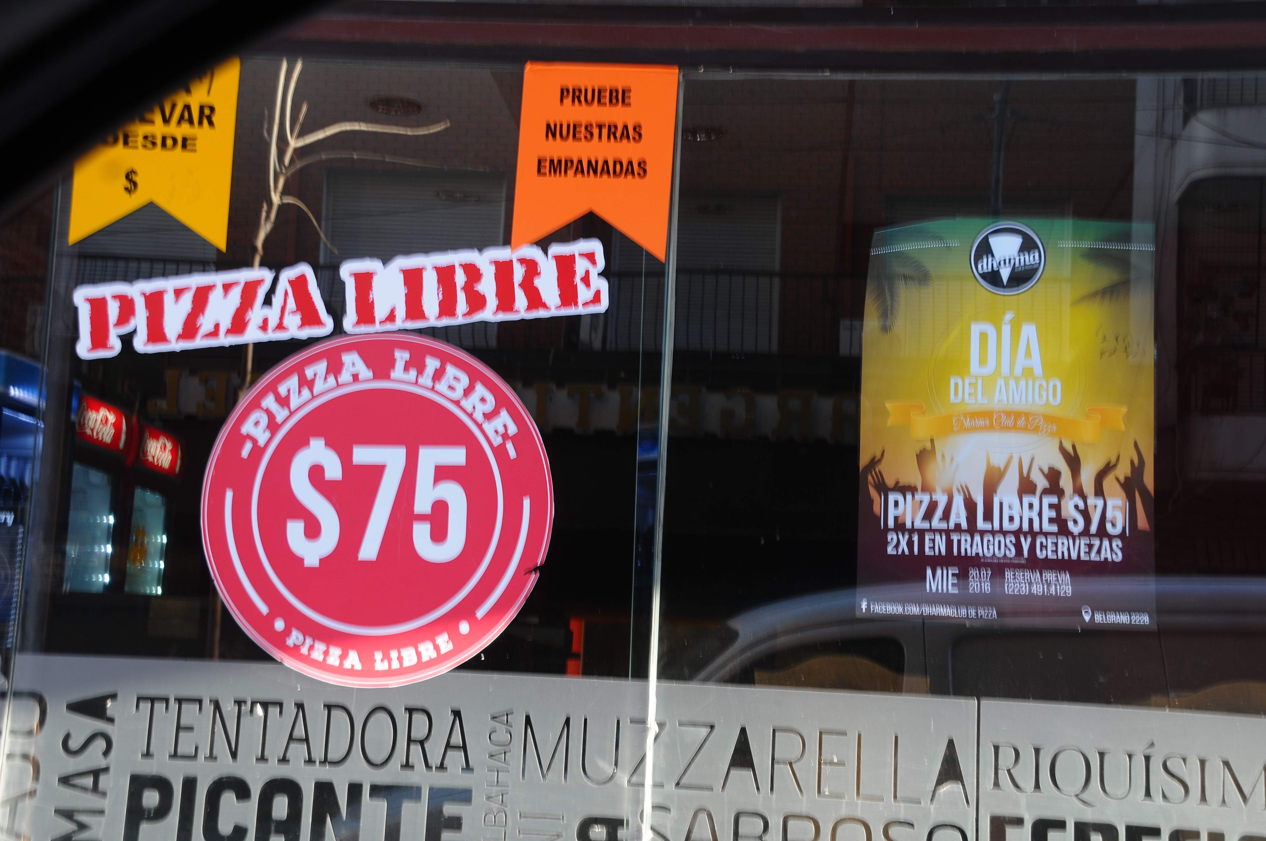 En el centro el club de pizza ofrece para hoy pizza libre por $75 y la posibilidad de beber dos y pagar uno tanto en vinos como en cervezas.
