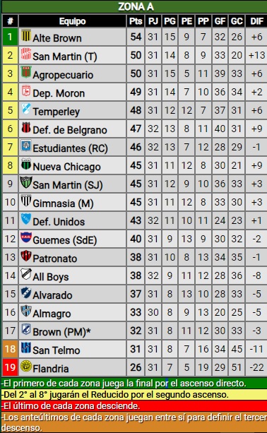 Alvarado le lleva 6 puntos a San Telmo, rival al que recibirá el domingo en el Minella en el partido más importante del año. Si gana escapará a 9 puntos (con 12 por jugar) -casi que asegura la permanencia-, si empata seguirá con la misma diferencia y si pierde “el candombero” se le pondrá a 3.