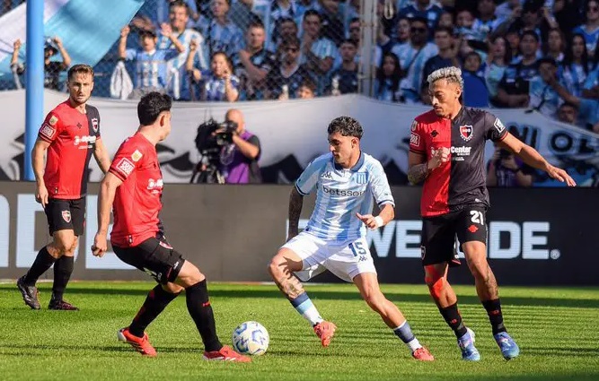 A pesar de la paridad inicial, Racing logró instalarse en campo rival y generó aproximaciones al arco de Newell s pero sin efectividad. Solo Adrián Martínez tuvo la más clara con un remate de zurda que pasó muy cerca del palo después de una definición algo sucia.