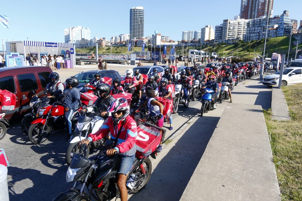 Motociclistas que trabajan para aplicaciones de reparto en Mar del Plata se autoconvocaron en pleno centro de la ciudad para exigir justicia en el caso de Johana Stanley, la mujer baleada días atrás por motochorros en el barrio San Martín.