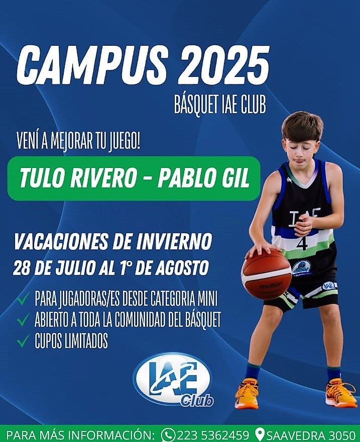 Entre el lunes 28 de este mes y el viernes 1 de agosto se realizará una nueva edición del “Campus de Básquetbol Tulo Rivero-Pablo Gil, en instalaciones del IAE Club (Saavedra 3050).