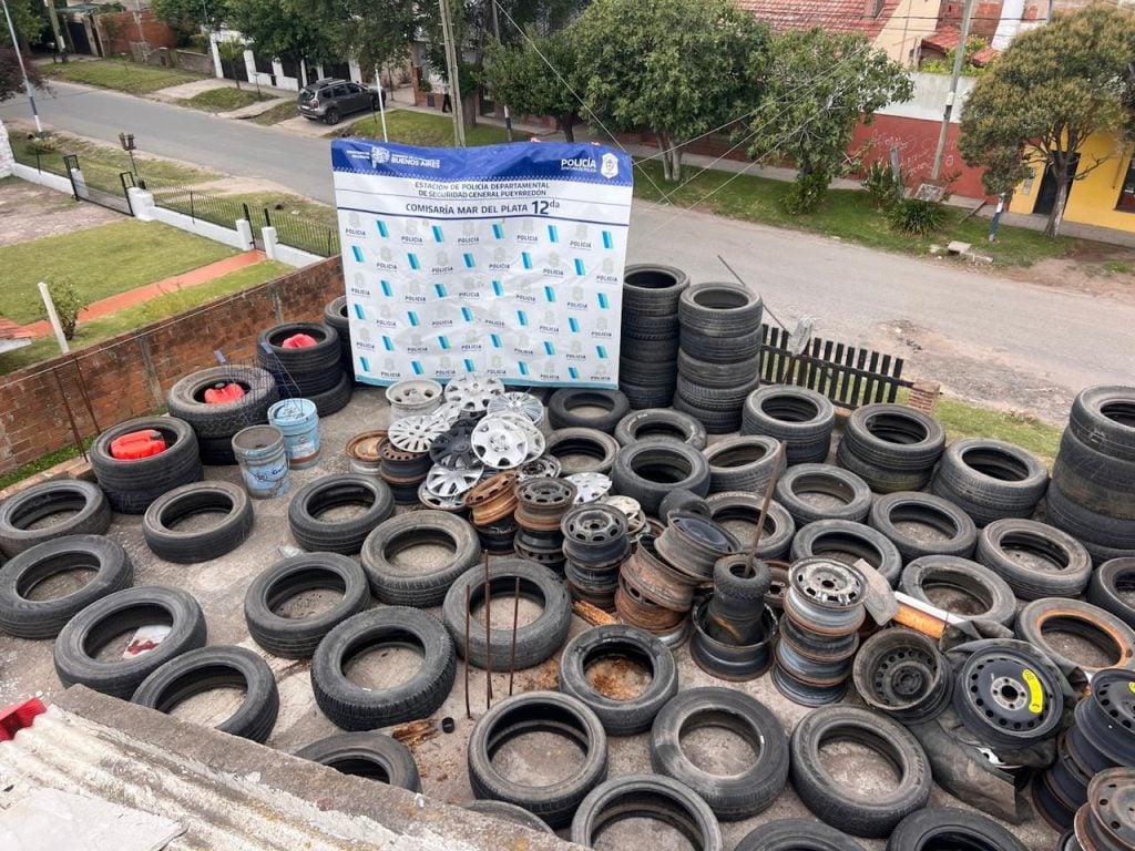 Más de 200 cubiertas de automóvil de distinta marca y rodado, medio centenar ruedas de neumáticos de motocicletas y ruedas armadas fueron parte del secuestro al inspeccionarse un establecimiento del barrio Jorge Newbery.