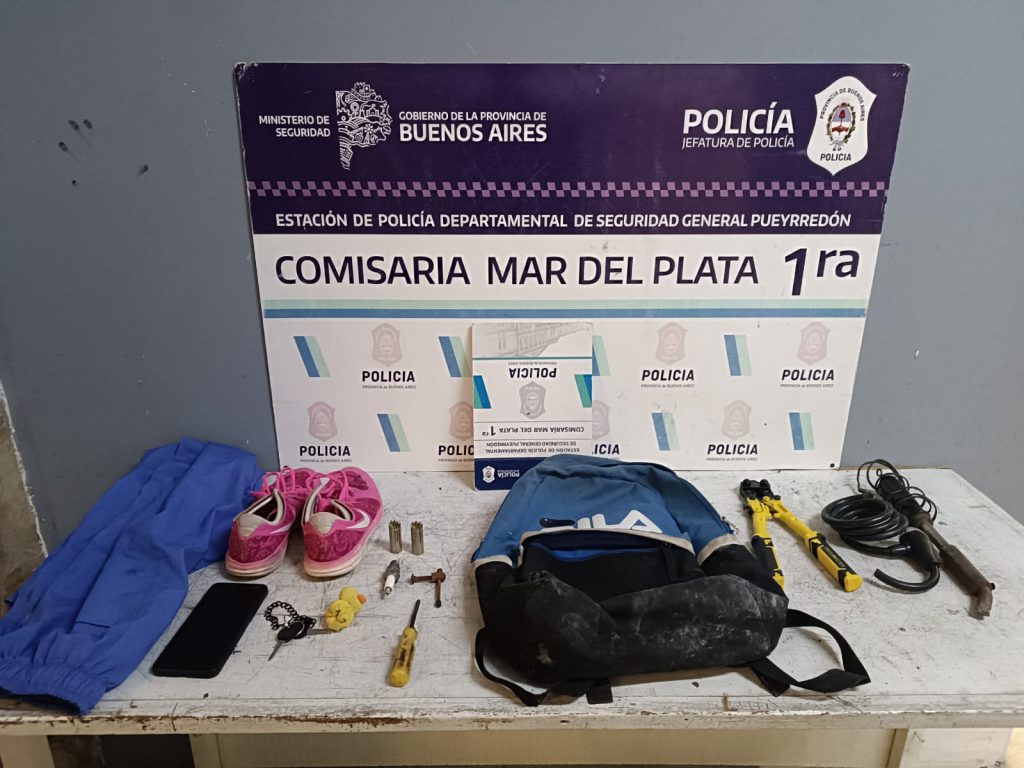 Los efectivos secuestraron la bicicleta, un teléfono celular, una mochila con distintos elementos personales y la herramienta utilizada para cortar el candado.