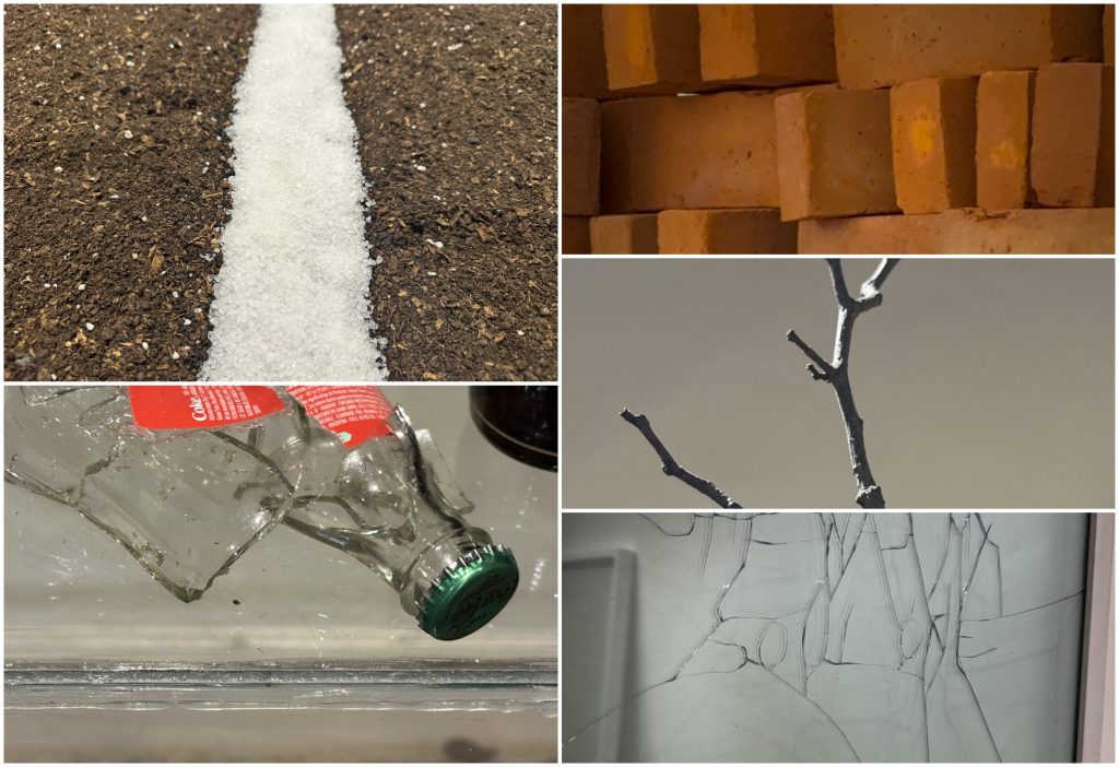 Mientras que Roveda decidió exponer una variedad de obras: desde instalaciones a lo que llama “poemas rotos”, confeccionados con vidrios rotos. En general, Roveda apuntó a la necesidad de que la muestra se recorra lentamente.