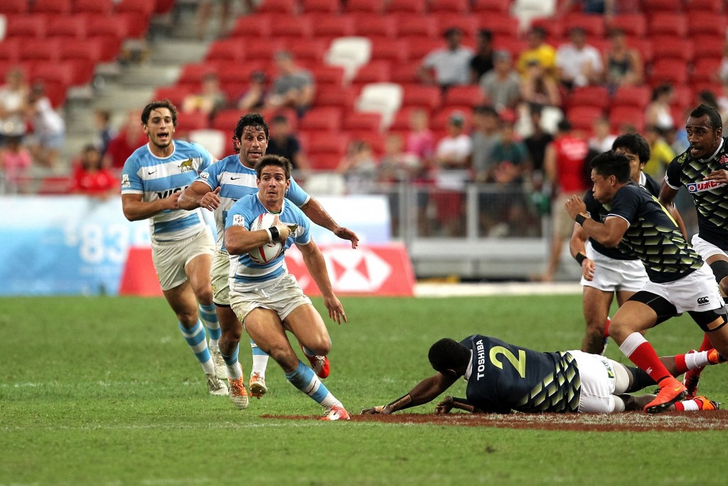 Los Pumas 7s completaron una excelente primera jornada en el Seven de Singapur, octava etapa del World Rugby Seven Series, tras vencer a Australia y Gales por 12-7 y 42-21, respectivamente, y conseguir un empate en 21 ante Japón, para acceder a los cuartos de final de la Copa de Oro.