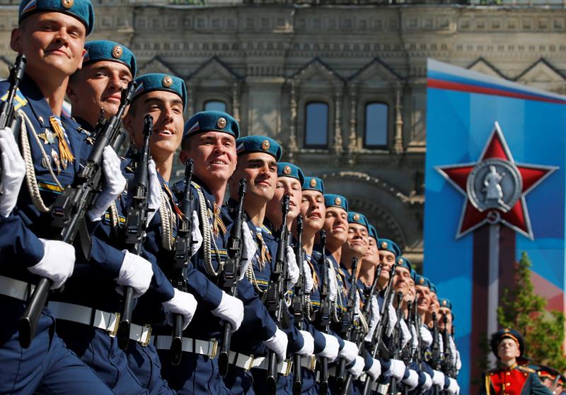 Más de 10.000 militares marcharon por la Plaza Roja de Moscú. El desfile recordó a los 26 de millones muertos en la II Guerra Mundial.
