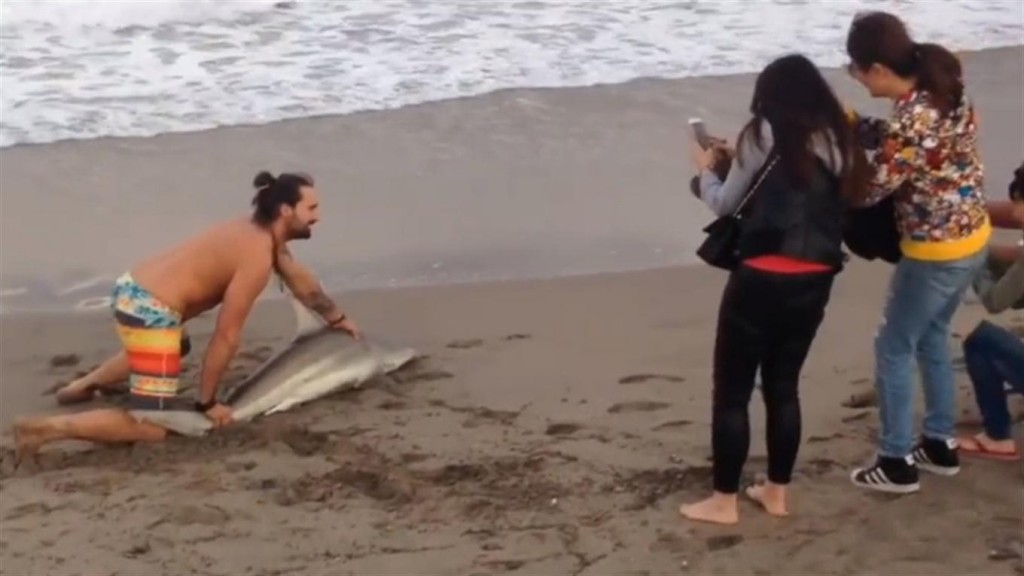 Ahora algo muy parecido ocurrió en las playas de Palm Beach, en el estado de Florida donde un hombre decide sacar a un tiburón bebé del agua e inmovilizarlo contra la arena para que una mujer le sacara fotos a su lado y además lo filmara.