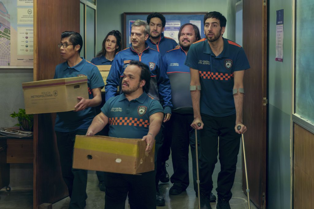 El grupo está formado por una chica en silla de ruedas, un agente con síndrome de down, un ciego, un policía con acromegalia, e incluso el jefe tiene un brazo ortopédico, entre otros, que hacen su trabajo con solvencia y con el resultado para el espectador de una mezcla de sentido del humor, ternura, desconcierto y respeto.
